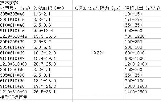 H14高效过滤器技术参数: