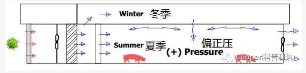 中性通风介于负压通风和正压通风之间,一般采用偏正压的方式。正压通风和负压通风注意点同样适用于中性通风。中性通风的问题在于舍内稳定的正压不易保证,安全性相对正压通风仍然较差。但考虑投资成本等因素,国内有不少项目采用该通风模式。