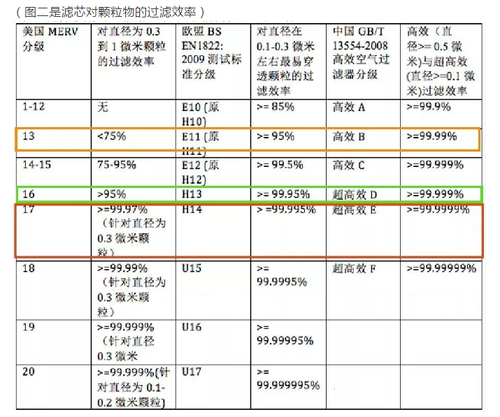 (图二是滤芯对颗粒物的过滤效率)