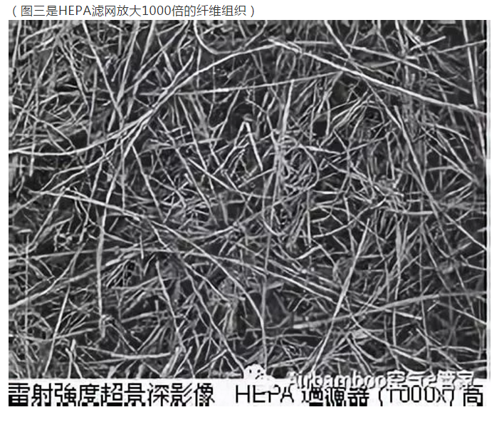(图三是HEPA滤网放大1000倍的纤维组织)