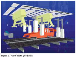 最近,我公司采用了另一种方法,以更科学的方式分析油漆车间设计性能,旨在优化气流,从而解决性能/成本问题。我公司所采用的这种方法利用了“计算流体动力学(CFD)”,对喷漆车间气流进行电脑模拟。这项工作是通过为生产环境特别设计的CFD程序,对生产环境内的气流进行模拟。这种由先进的计算机技术引导地对喷涂车间环境内的气流的关注的CFD方法,率先被福特汽车所采用,随后被其它汽车公司和生产线使用。